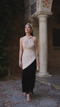 Vestido flecos beige y negro