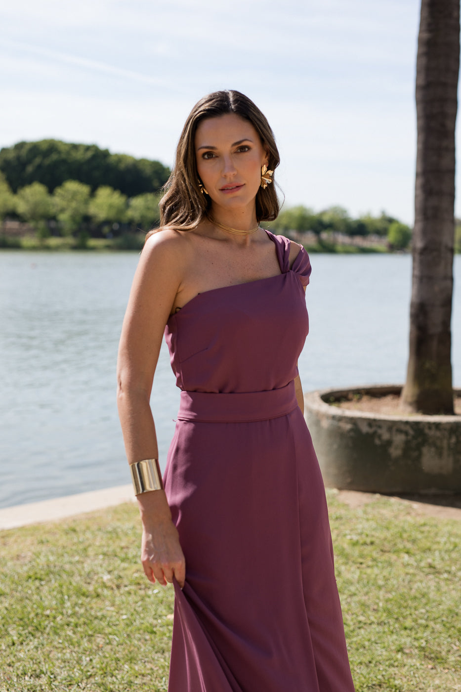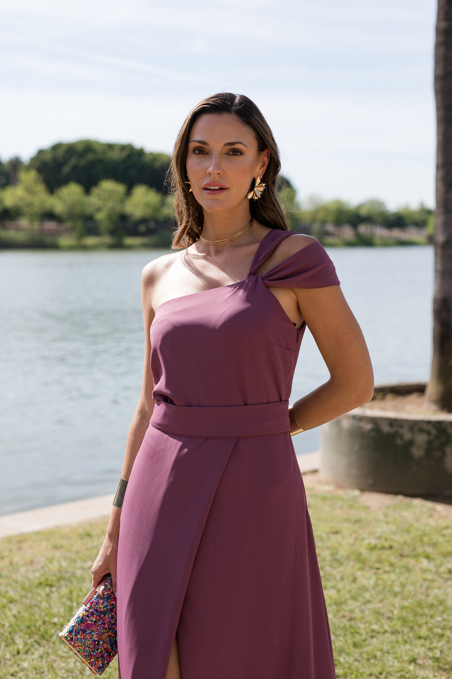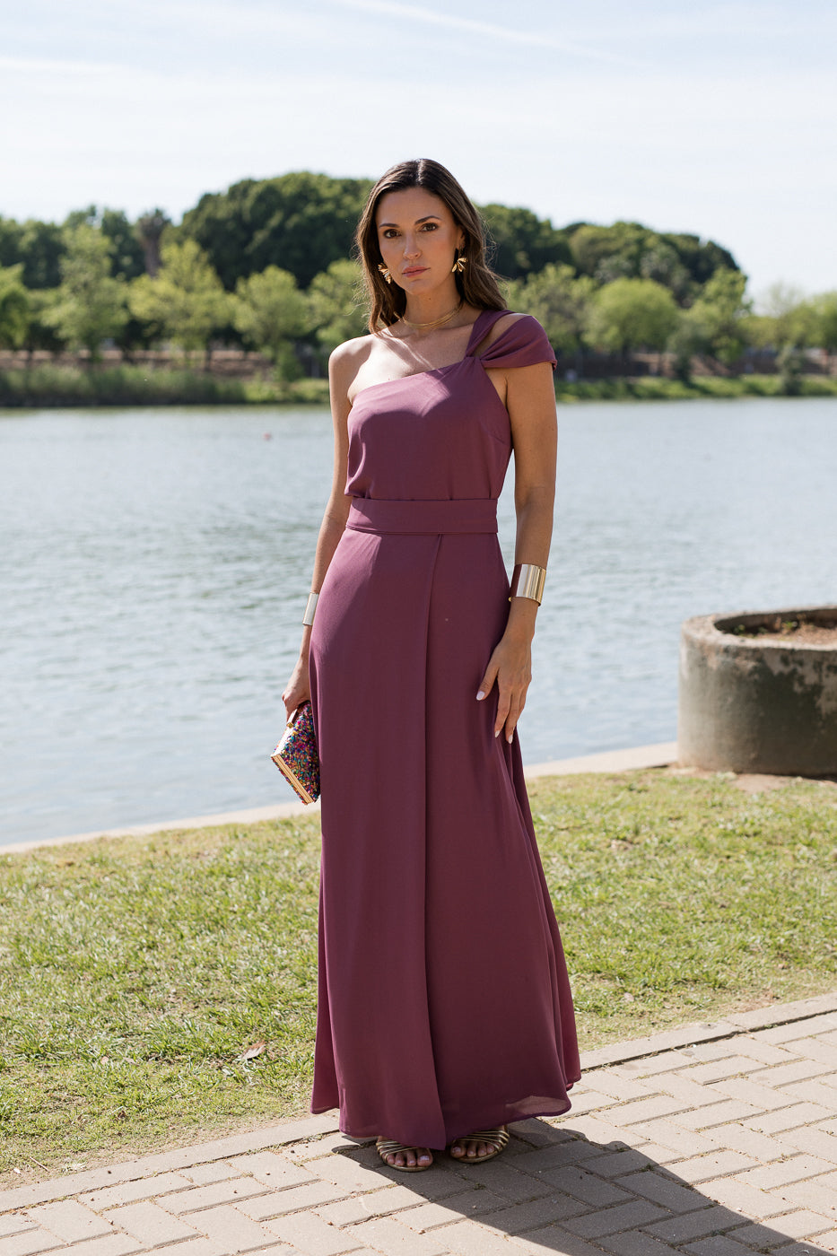 Vestido largo con hombro asimétrico