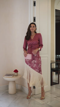 Conjunto de Blusa + falda de flecos rosa empolvado PROXIMAMENTE DISPONIBLE