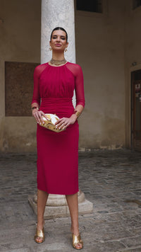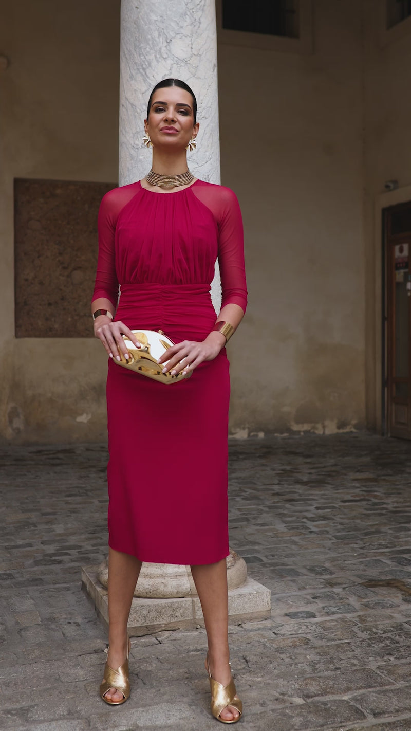 Descubre el vestido perfecto para ser la invitada ideal: nuestro elegante vestido confeccionado en crepe, diseñado para realzar tu figura y ofrecerte máxima comodidad.