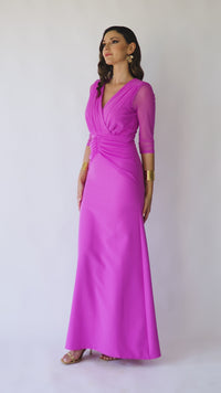 Este vestido de invitada es muy especial, su drapeado lateral favorece la silueta y el detalle de la espalda hará que seas la envidia del resto de invitadas.