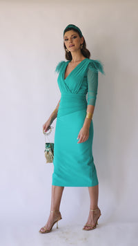 Vestido midi drapeado turquesa